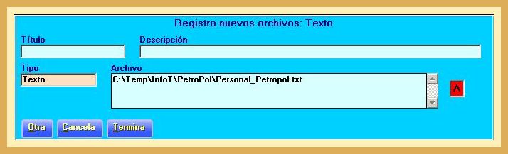 En estos casos, Info-Total pide el título, descripción y archivo que contiene la información. Use el Explorador de Windows para localizar la carpeta, y arrástrela hasta el recuadro rojo que contiene una letra A, soltándola ahí.    Los usuarios de Info-Total podrán revisar ésta información en  cualquier dispositivo.