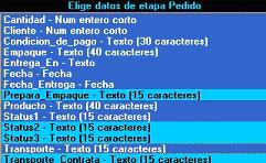 - Datos específicos del proceso, de tipo texto, memo, cantidades, Moneda, fechas, Si-No y Opciones ó  clasificadores.