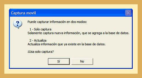 Si Eligio PDA-Tel, decide si desea solo captura o actualización. Solo Captura significa que transferirá a la PDA-Tel una tabla sin datos, solo con los nombres de los datos, para agregar nuevos registros; Actualización significa que transferirá una tabla con datos y nombres de datos, para modificar alguno de esos datos.