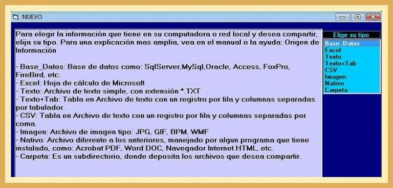 La información esta en las computadoras de su red local, en diversas formas.   Para elegirla se presenta esta ventana: