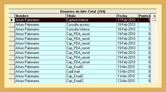 Reporte detallado de actividad y puntos de cada Usuario, que le permite conocer la utilización que da a Info-Total cada usuario individual.