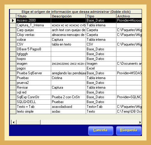 Puede revisar y eliminar los orígenes de información que tiene registrados en Info-Total, que se presentan en la tabla, para elegir.